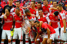| Jubilant Arsenal players after their Community Shield triumph over Man City |